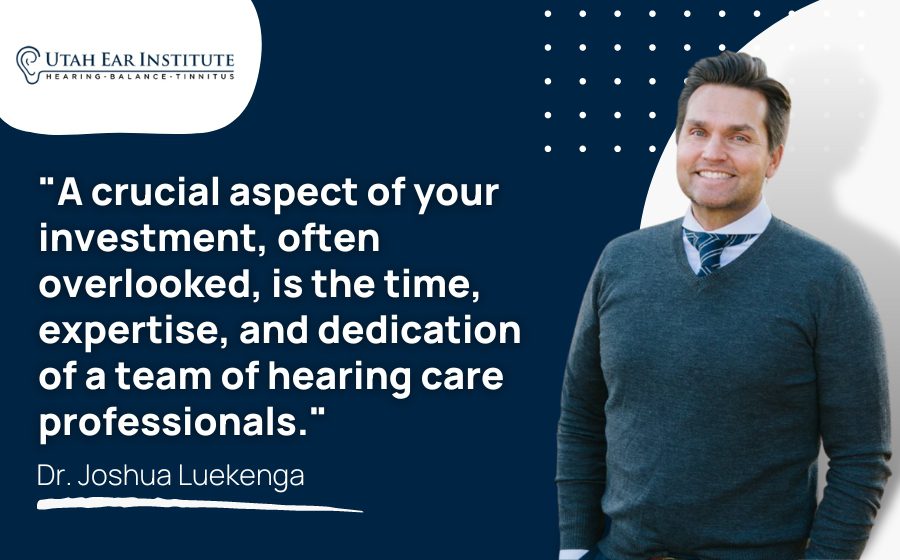 Your degree of hearing loss, lifestyle, and personal preferences significantly affect the final cost. Hence, at the Utah Ear Institute, we firmly believe in performing a comprehensive hearing assessment and understanding your lifestyle before proposing any solutions.